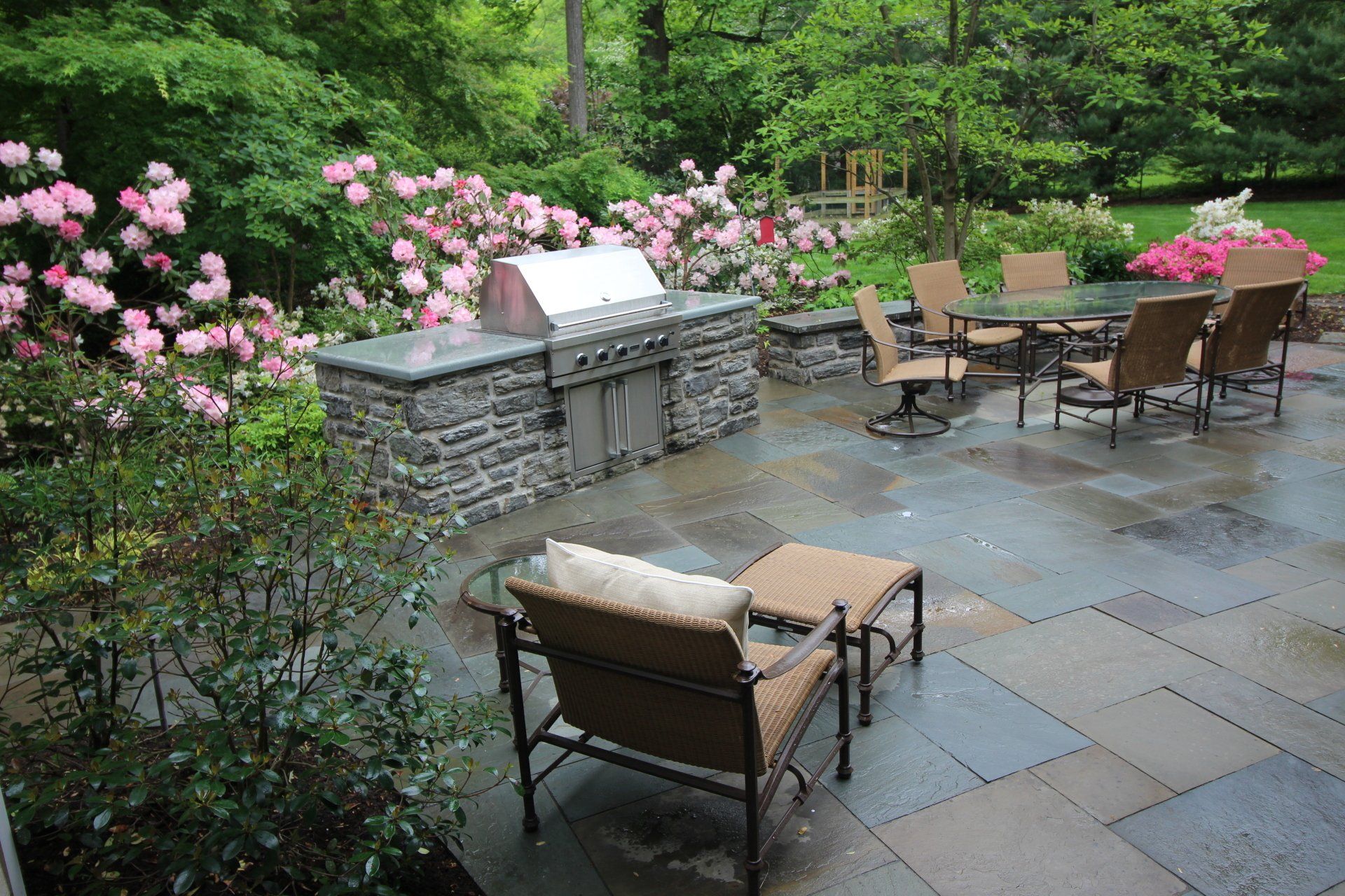 Outdoor spaces are great for entertaining a crowd or for just relaxing with a book on your own. Here is a beautiful outdoor terrace, walls, pergola and herb gardens near Villanova, PA.