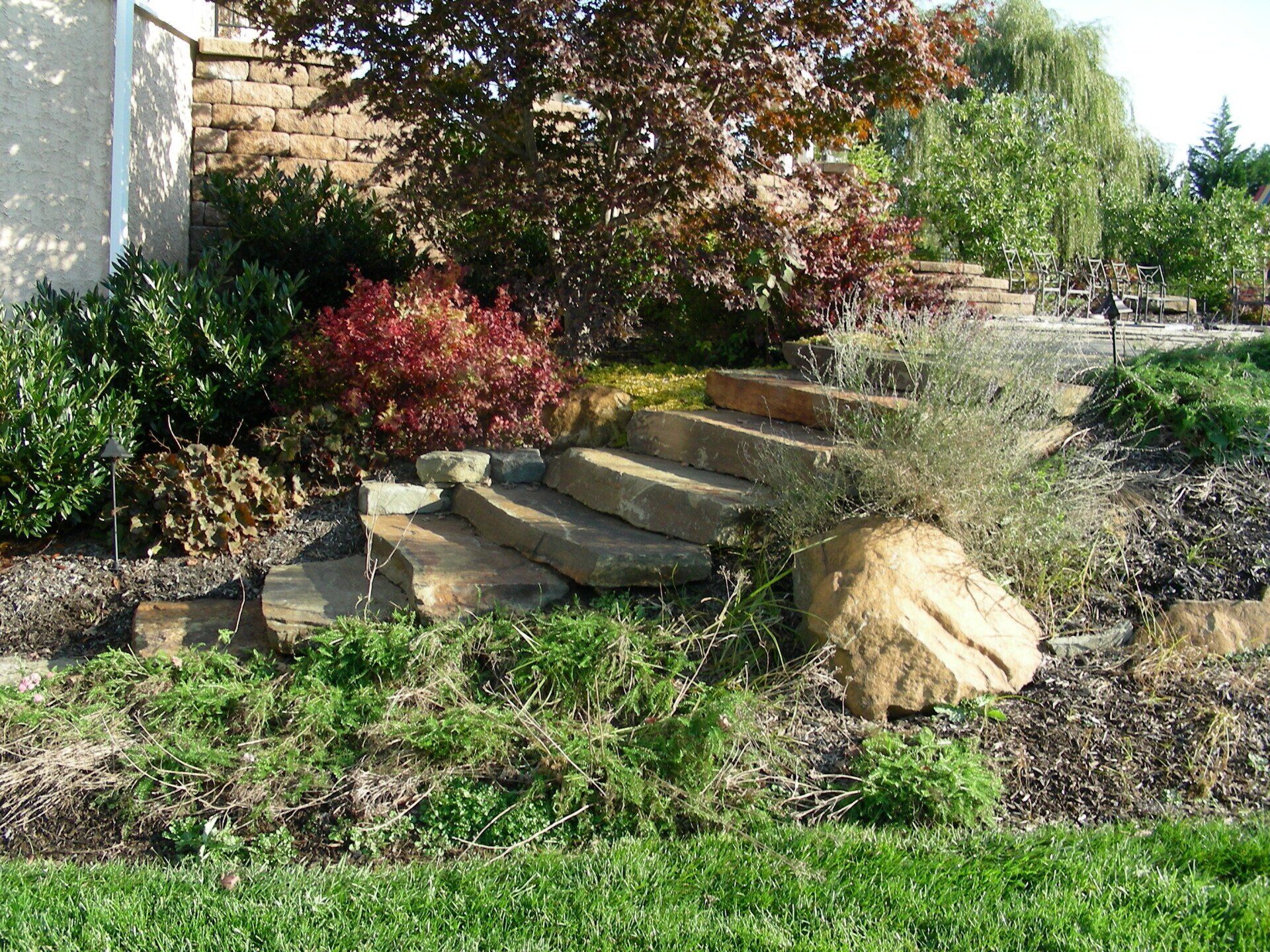 Improper drainage can lead to water into unwanted areas of your home and on your property. We have to address water issues as a part of every project that we encounter. Through detailed property assessment we can resolve or at very least improve most water problems on your property. Every situation is different and requires a different solution. We will accurately assess the situation and arrive at creative and innovative solutions to restore beauty and value to your property. In some cases a may require re grading, building a swale and/ or berm, running downspouts or sump pump drains into a pipe to exit to a better place. In other situations it may require a water containment system where the grades don't allow for water to be moved to a more desirable place. We can even transform a bad water situation into a beautiful landscape accent, by incorporating a pondless water feature as part of the water storage.